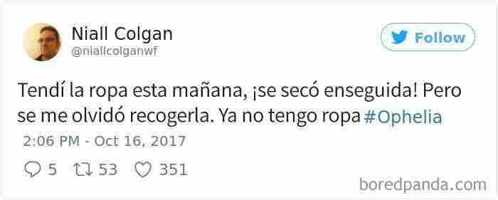 Ahora puedes leer el artículo de Bored Panda sobre 10+ Divertidas reacciones al huracán Ophelia que demuestran que los irlandeses están locos.