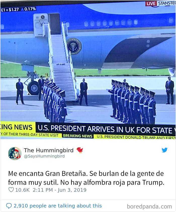 20 Divertidos memes sobre la visita de Trump a Reino UnidoPor BoredPanda / 5 junio, 2019 source source source source source source source source source source source source Ahora puedes leer el artículo de Bored Panda sobre 20 Divertidos memes sobre la visita de Trump a Reino Unido. Seguir leyendo artículo en BoredPanda.
