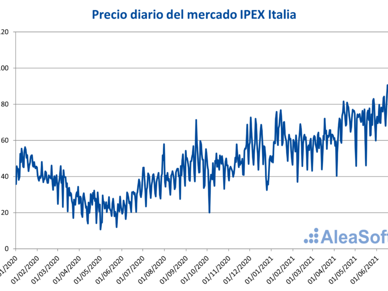 Concretamente en junio de 2021 se registró un comportamiento marcadamente creciente en la demanda eléctrica italiana, el cual condujo al máximo registrado. Este aumento de la demanda en los meses de verano es habitual en el mercado italiano debido al aumento de las temperaturas.