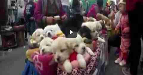 Hoy traemos unas sorprendentes imágenes del mercado de China donde se venden perros como si de peluches se tratara.
