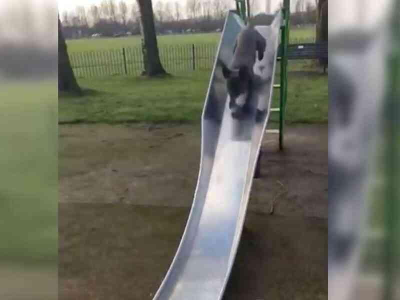 Ahora puedes leer el artículo de UpSocl sobre Bulldog se lanza por un resbalín y en la mitad sale disparado. Cae con fuerza pero él es más fuerte.