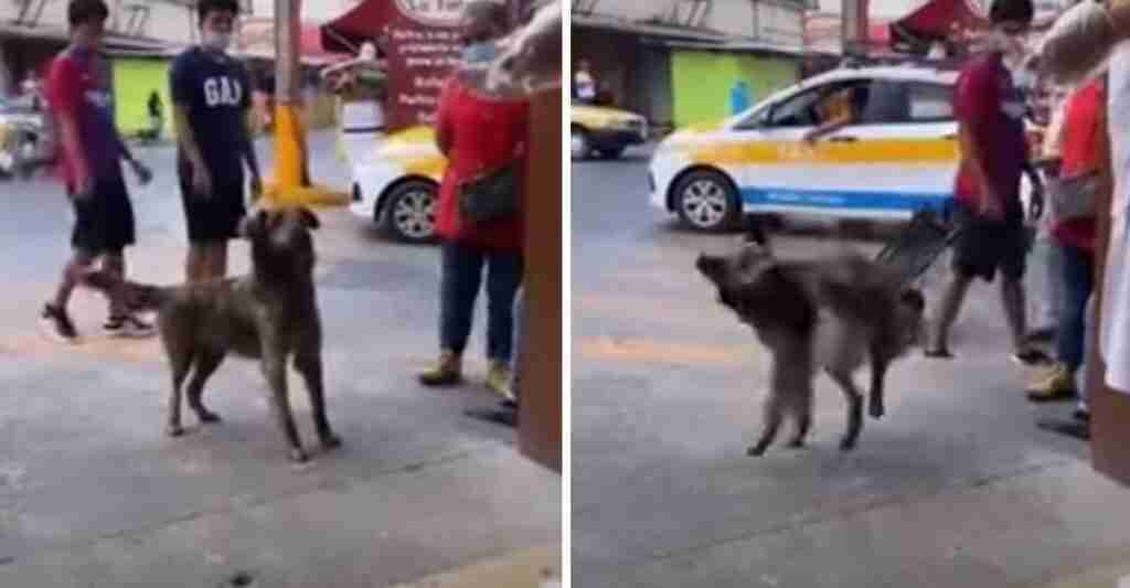 Perrito aprendió a hacer un truco para que le regalen pan en una tienda. Gira cuando le ordenan
