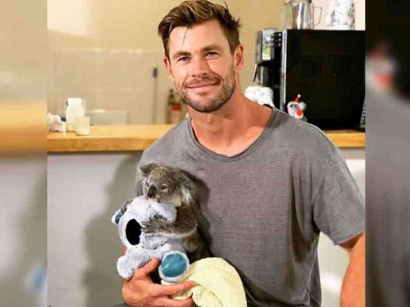 Chris Hemsworth cuidó un koala en un centro de Australia. Deseo que me cargue así, entre sus brazos