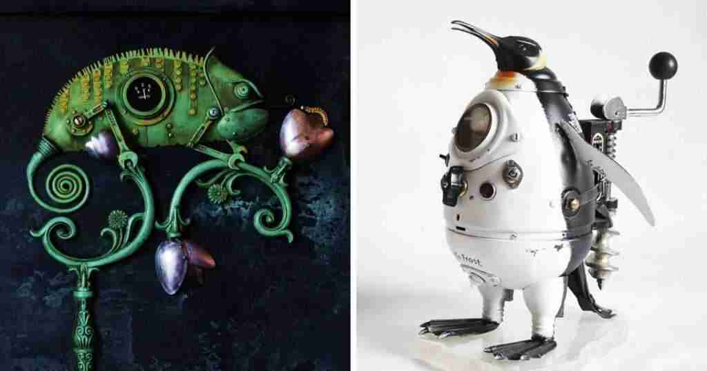 Ahora puedes leer el artículo de Bored Panda sobre Creo esculturas steampunk a partir de basura.