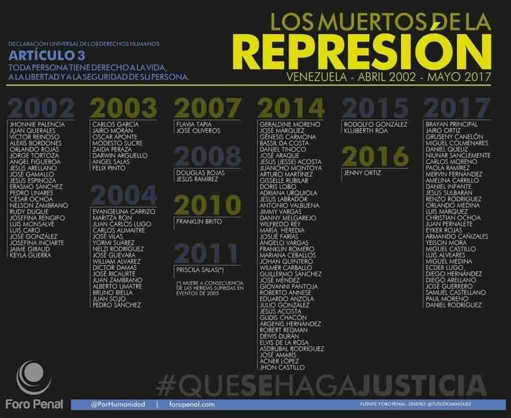 Desearía poder escribir acerca de los dolores de cabeza que causan nuestros hijos cuando van creciendo, pero esa foto que está en el artículo hace referencia de los fallecidos por este narcogobierno que tiene secuestrado a mi país. Son jóvenes que han fallecido por tener la valentía y el…