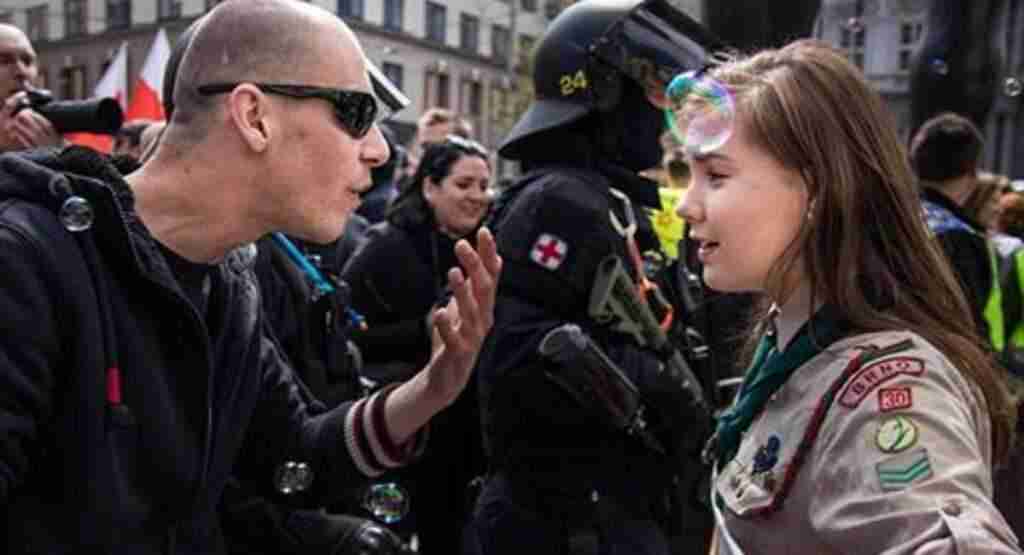 Todos quedamos absortos cuando se volvió viral la fotografía de la joven scout Lucie enfrentándose a un neonazi durante una marcha de extrema derecha en Brno, República Checa. Sucedió el primero de mayo de 2017 y al siguiente día ya era replicada en muchos sitios web a nivel mundial. Pero…