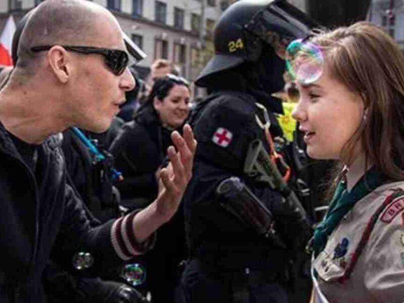Todos quedamos absortos cuando se volvió viral la fotografía de la joven scout Lucie enfrentándose a un neonazi durante una marcha de extrema derecha en Brno, República Checa. Sucedió el primero de mayo de 2017 y al siguiente día ya era replicada en muchos sitios web a nivel mundial. Pero…