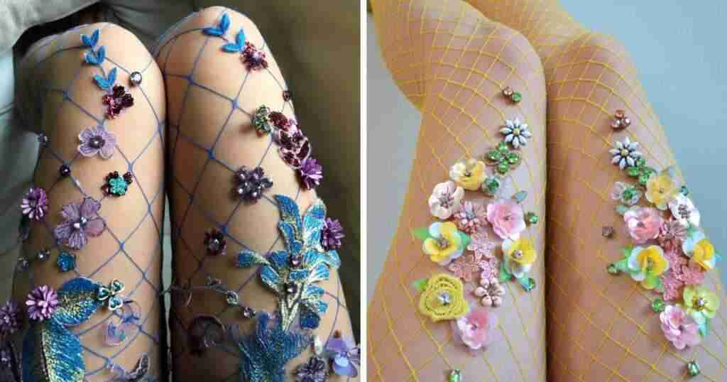 Lirika Matoshi es una artista que vive en Nueva York y que crea obras increíbles y detalladas que te puedes poner… en las piernas. Utiliza medias de red como base, y añade piedras de cristal, cuentas y flores falsas para crear prendas que le encantarían a una princesa moderna.