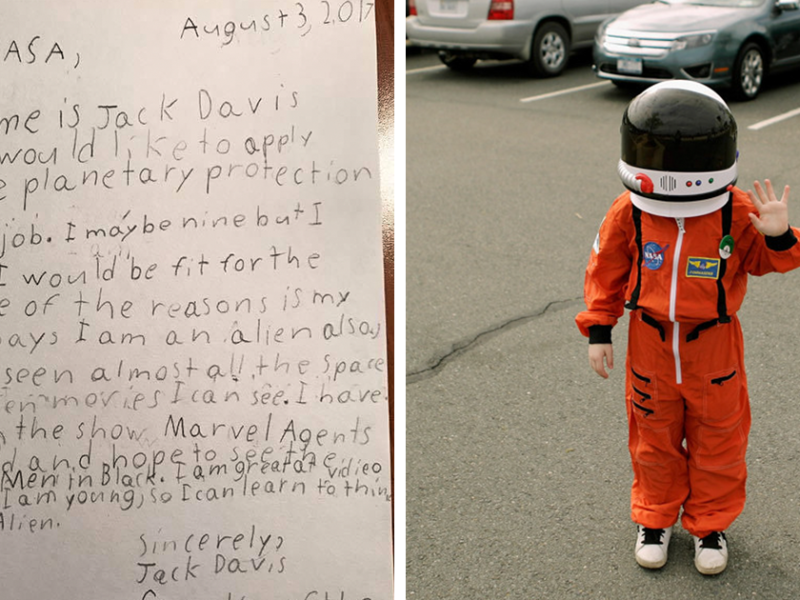 Tras anunciar un puesto de trabajo como “Oficial de Protección Planetaria”, la NASA ha recibido incontables solicitudes, pero ninguna tan original y adorable como la de Jack Davis, un niño de 9 años cualificado como “Guardián de la Galaxia”.