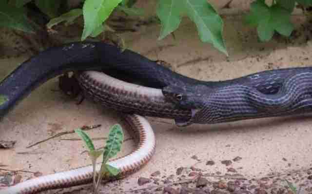 Christopher Reynolds, que vive en Newton, Texas, se encontró mientras paseaba con su mujer a una serpiente teniendo…