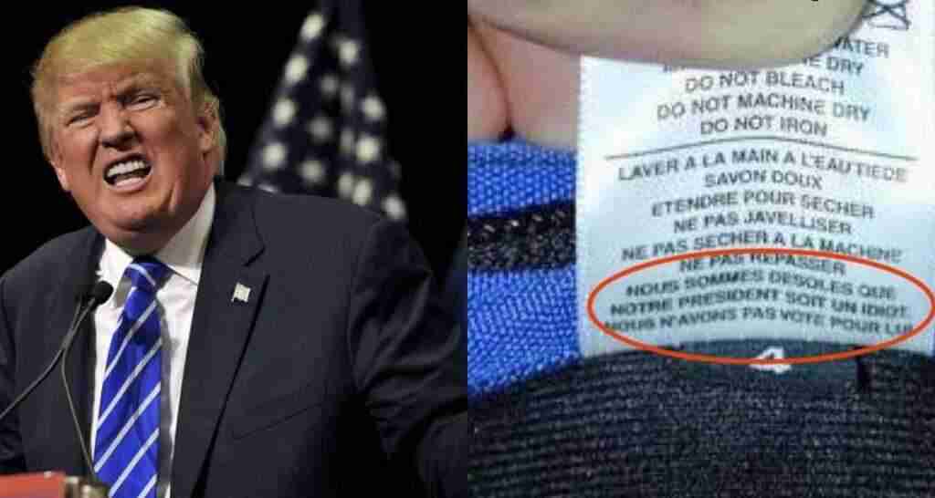 Esta imagen está dando vueltas alrededor del mundo y muchos piensan lo mismo: pedimos perdón por nuestro presidente… ¿Donald Trump? La etiqueta de este producto de la compañía Tom Bihn (que se vende en Estados Unidos y en Canadá, por eso el francés) dice: “Nous sommes desoles que…