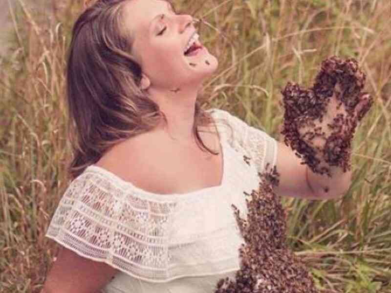 Ahora puedes leer el artículo de UpSocl sobre La vimos embarazada y posando con 20 mil abejas. Ahora usó 40 mil y agregó una serpiente a la sesión.