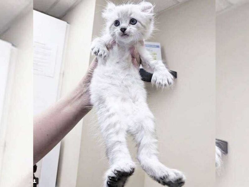 Tal como este pequeño gatito, que nació con sus 2 patas delanteras deformadas y muchos dedos adicionales… razón por la que…