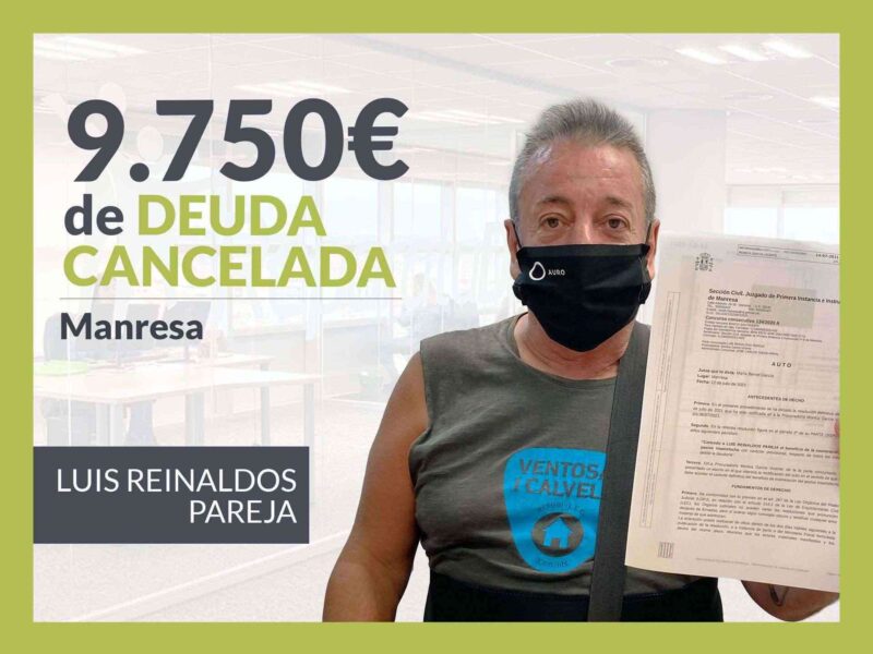 Luis Reinaldos Pareja, vecino de Manresa (Barcelona), capital de la comarca del Bages, acudió a Repara tu Deuda, despacho de abogados líder en España en la Ley de Segunda Oportunidad, para intentar cancelar sus deudas. Ahora, tras dictar el Juzgado de Primera Instancia nº8 de Manresa (Barcelona) Beneficio de Exoneración del Pasivo Insatisfecho (BEPI) en su caso puede empezar de cero. VER SENTENCIA