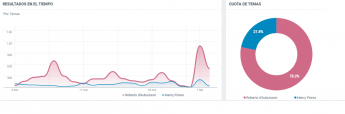 Además, en esta red social, la tendencia del sentimiento positivo, en Henry Flores, ha disminuido del 28,4% al 3,8%, aumentando el sentimiento positivo de d’Aubuisson en seis puntos.