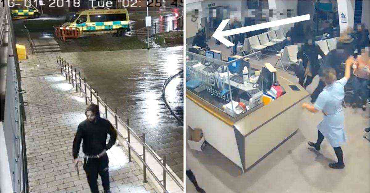 La policía de Leicestershire, Inglaterra ha compartido impactantes imágenes que muestran a una valiente enfermera enfrentarse a un hombre que puso en peligro su vida y la de sus pacientes con un cuchillo.