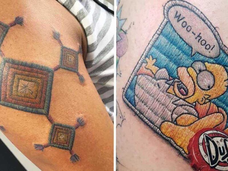 ¿Te gustan los bordados? Estos tatuajes harán parecer que los llevas hilo a hilo en tu piel