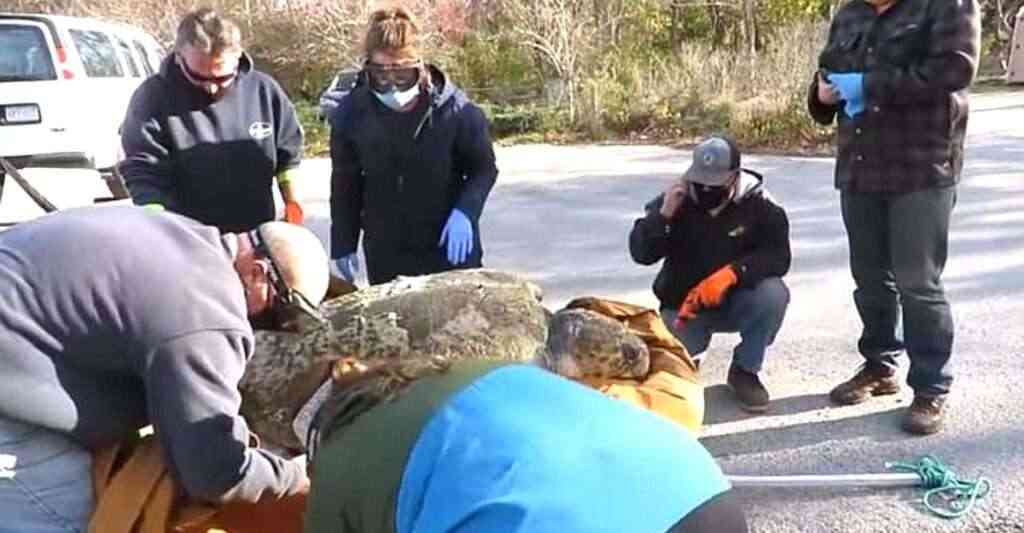 Pesando 159 kilos y encontrándose aturdida, fue encontrada varada de espaldas una tortuga boba en una playa de Cape Cod, en el estado de Massachusetts. Su estado inconsciente se debía a que había sido aturdida por el frío, corriendo el riesgo de fallecer al encontrarse también boca arriba,…