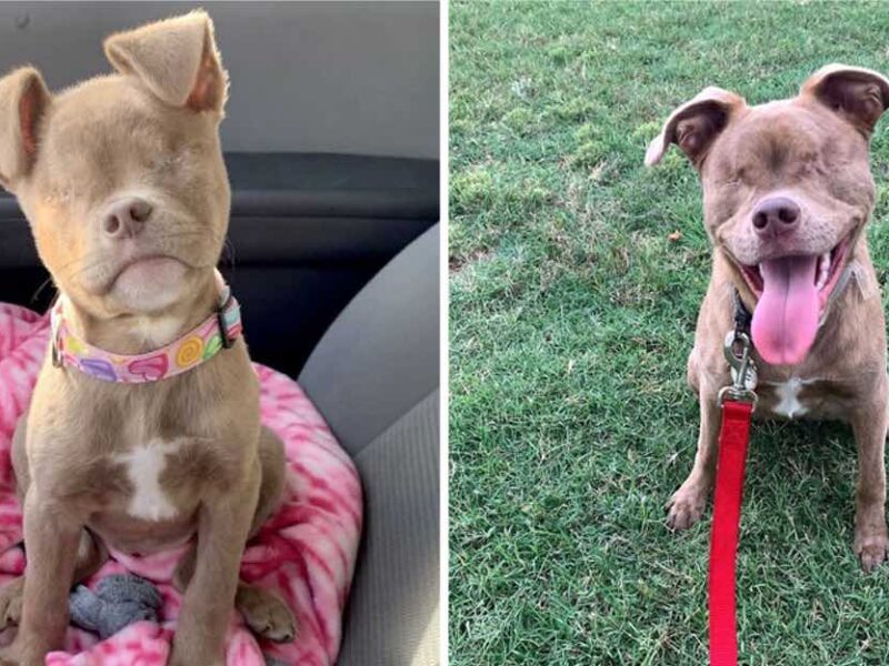 Cuando Puddin tenía tan solo seis semanas, lo rescataron de sus dueños en Texas, Estados Unidos, con quienes vivía muy descuidada y sufrió una infección ocular.
